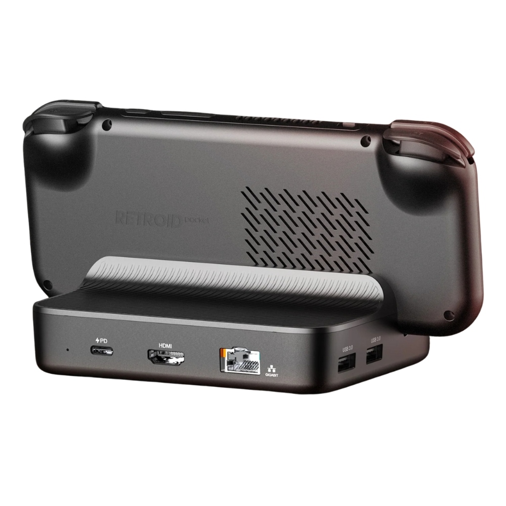 Több eszközzel való kompatibilitás: A Retroid Dock Station kompatibilis számos USB-C porttal rendelkező népszerű eszközzel, beleértve a Retroid Pocket sorozat konzoljait. Teljes kompatibilitást kínál a Retroid Pocket 5 (RP5) és a Retroid Pocket 4 Pro (RP4 Pro) készülékekkel. A Retroid Pocket 4 (RP4, D900) és a Retroid Pocket 3 Plus (RP3+) modellek esetén a funkcionalitás részleges, és a Retroid Pocket 3 (RP3) esetén csak a töltés lehetséges. Az állomás automatikusan igazítja képességeit a specifikus modellhez, biztosítva a stabil kapcsolatot és a készülék követelményeinek megfelelő összes kulcsfunkció zökkenőmentes működését.
