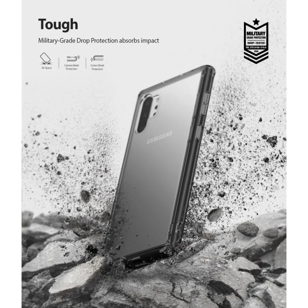 Egyedülálló kialakítású tok mely rendkívül vékony mégis strapabíró. Flexibilis PC anyaghasználattal készült, helyenként rezgés elnyelő TPU anyaghasználatból készült részekkel, megemelt perem részei pedig gondoskodik arról hogy a készülék kijelzője ne érintkezhessen közvetlenül semmilyen felülettel. Ebből kifolyólag MIL STD 810G-516.6 minősítéssel rendelkezik, mely tanúskodik arról hogy a teszt készülék a tok használatával túlélte a 2 méter magasságból történő zuhanást 26 alkalommal. Mint minden RIngke márkájú tok, úgy a Fusion is több tesztnek lett alávetve, ami biztosítja a vásárlókat hogy tökéletes illeszkedik a készülékre és kifogástalan védelmet nyújt.