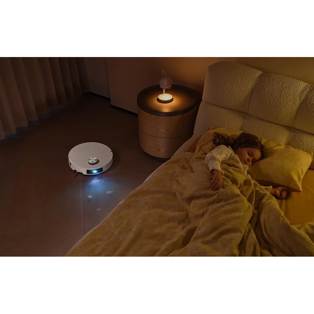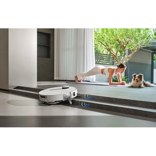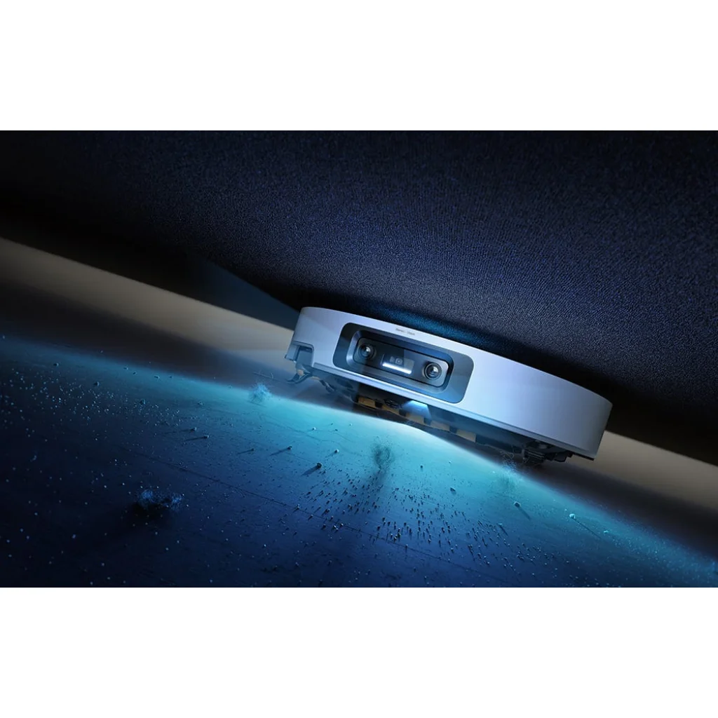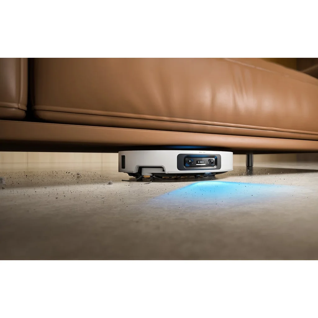 A VersaLift navigációs rendszernek köszönhetően a robot automatikusan megváltoztatja a környezetének észlelését attól függően, hogy hol dolgozik. Nyitott terekben egy emelt DToF érzékelőt használ, amely 360°-ban pásztázza a szobát, és gyors, pontos térképezést biztosít. Alacsony bútorok alá kerülve azonban az érzékelő teljesen el van rejtve, és a készülék LED-es megvilágítású kettős kamerákra (AI és projektor támogatásával) vált, amelyek háromdimenziós képet alkotnak a térről. Ez lehetővé teszi, hogy az X60 Ultra Complete gyenge fényviszonyok között is jobban teljesítsen, anélkül, hogy elveszítené tájékozódási képességét, lelassulna vagy kitalálná az útvonalat, hanem alaposan megtisztítja azokat a területeket, amelyeket más robotok általában figyelmen kívül hagynak – például a szekrények vagy kanapék alatt. A készülék karcsú kialakítása is fontos. Amikor az érzékelő behúzott állapotban van, magassága csak 7,95 cm, így szűk sarkokban is szabadon tisztíthat.