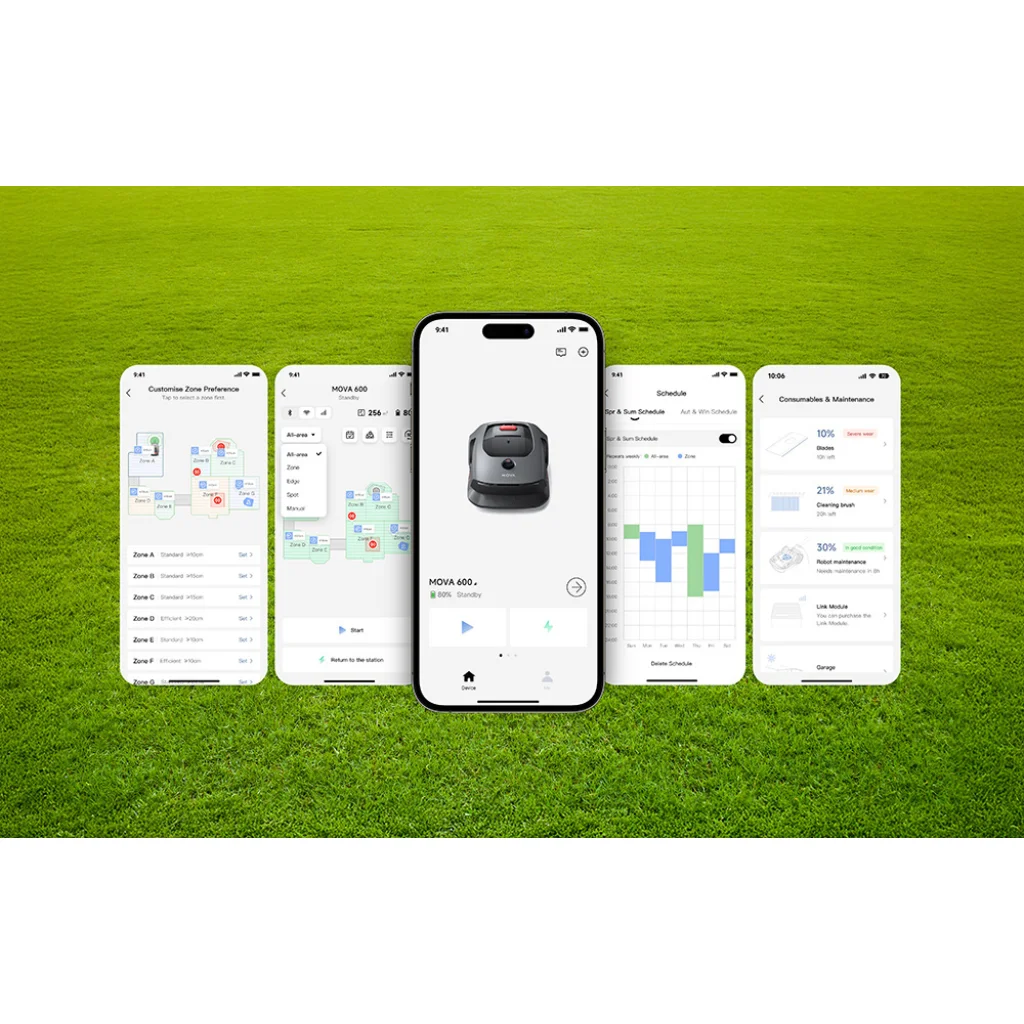 MOVA 600 kaszáló robot, amely az intelligens technológiát az egyszerű kezelhetőséggel ötvözi, garantálja a tökéletes gyepápolást minimális erőfeszítéssel. Az UltraView™ technológiával és 3D LiDAR térképező rendszerrel felszerelve kiemelkedő pontosságot és kaszálási hatékonyságot biztosít. Támogatja a több zónás kezelést, valamint a MOVAHome alkalmazáson keresztüli távvezérlést. Az IPX6 vízállóságával, csendes működésével, valamint az automatikus töltés funkcióval ideális választás kerttulajdonosok számára 600 négyzetméterig. A MOVA 600 esőben is biztonságos, időt és energiát takarít meg, miközben károsanyag-kibocsátásmentes, fenntartva a környezetet. Az alkalmazáson belüli personalizálás lehetőségével és különböző fűnyírási módokkal optimális gyepápolást nyújt minden évszakban. Tartalmazza a szükséges kiegészítőket, mint a LiDAR védőburkolat, töltőtorony, tisztítókefe, és tartalék pengék. Az intelligens UltraView™ funkcióval, vízállósággal és csendes működéssel a MOVA 600 tökéletes megoldás a modern kerttulajdonosok számára.