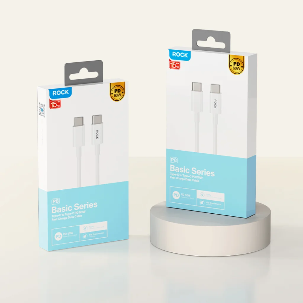 Rock Kabel P8 Basic Series - Type C - Lightning - PD 27W 3A 1 méter fehér