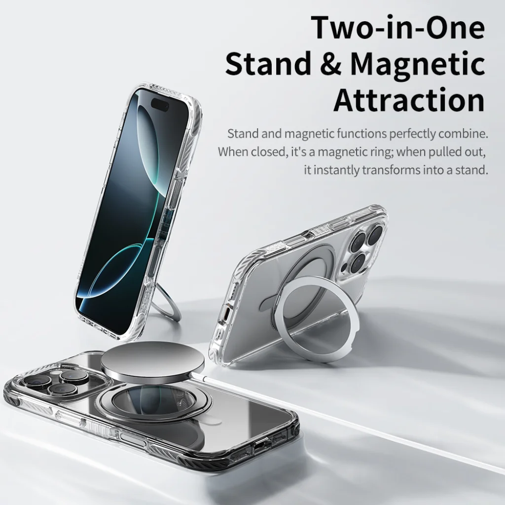 - Integrated magnetic holder – Functional ring doubles as a stand.