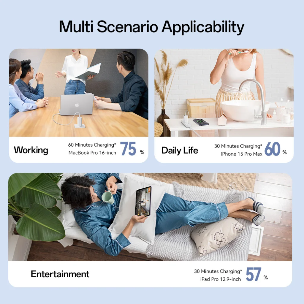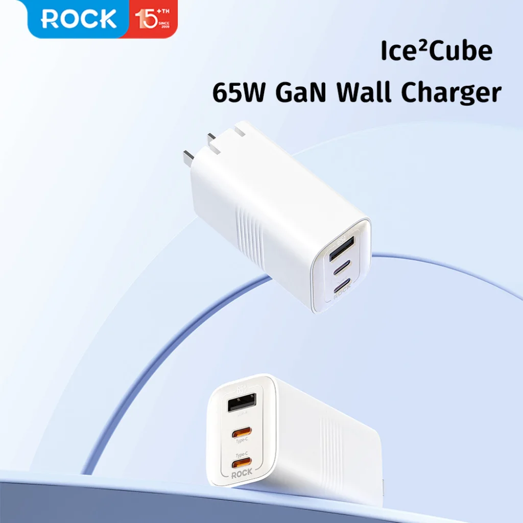 Rock Wall töltő Ice2Cube GaN - USB + 2xType C - PD 65W 3A fehér,