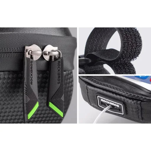 A Rockbros 010-4BK az űrtartalma révén megkülönböztethető, így könnyedén tárolhat olyan tárgyakat, mint a kulcsok, lakat, zseblámpa vagy bicska. Továbbá a termék telefontartóként is funkcionál, és lehetővé teszi a kényelmes navigálást vezetés közben vagy zenehallgatást. Az átlátszó képernyőablak érzékeny az érintésre, és gyors reakciót garantál a készüléktől, míg a napellenző biztosítja a jó láthatóságot erős fényben.