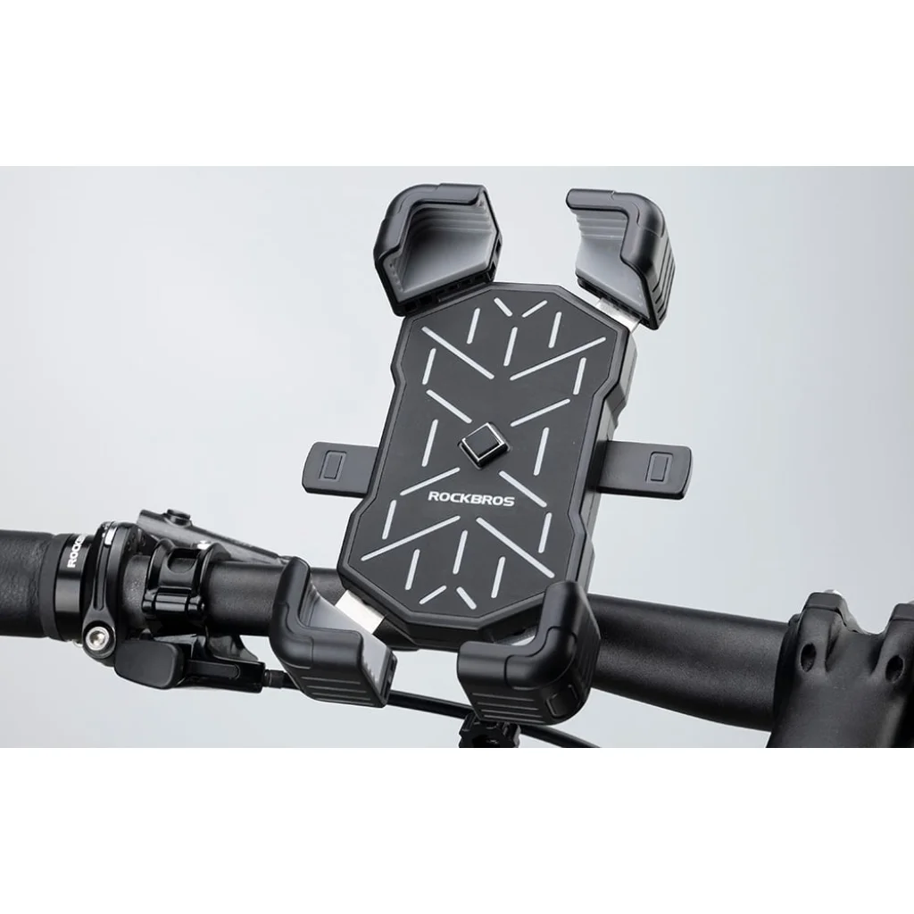 A Rockbros HW-117 egy kerékpárhoz, e-bike-hoz és motorkerékpárhoz tervezett stabil telefontartó. Támogatja a 4,5 és 7,2 hüvelyk közötti átlóméretű okostelefonokat, és az automatikus rögzítő mechanizmusának és rugós funkcióinak köszönhetően egy kézzel gyorsan és biztonságosan rögzítheti telefonját. Csak nyomjon meg egy gombot, és a karok átölelik a készüléket.