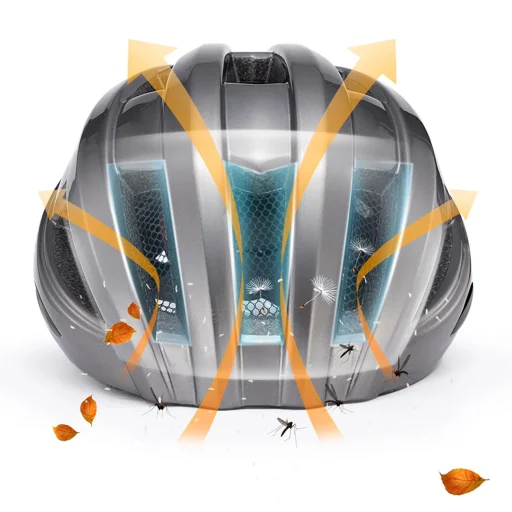 - Kiváló szellőzés: 13 nagy szellőzőnyílás és a védőháló elöl biztosítják a kényelmes levegőáramlást és védelmet a rovarok ellen.