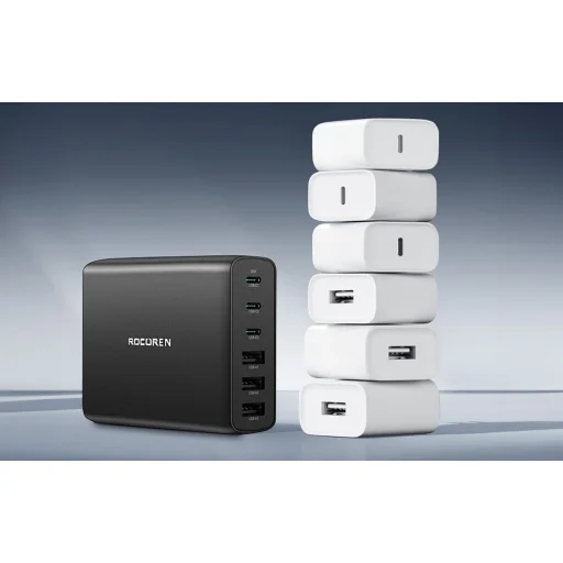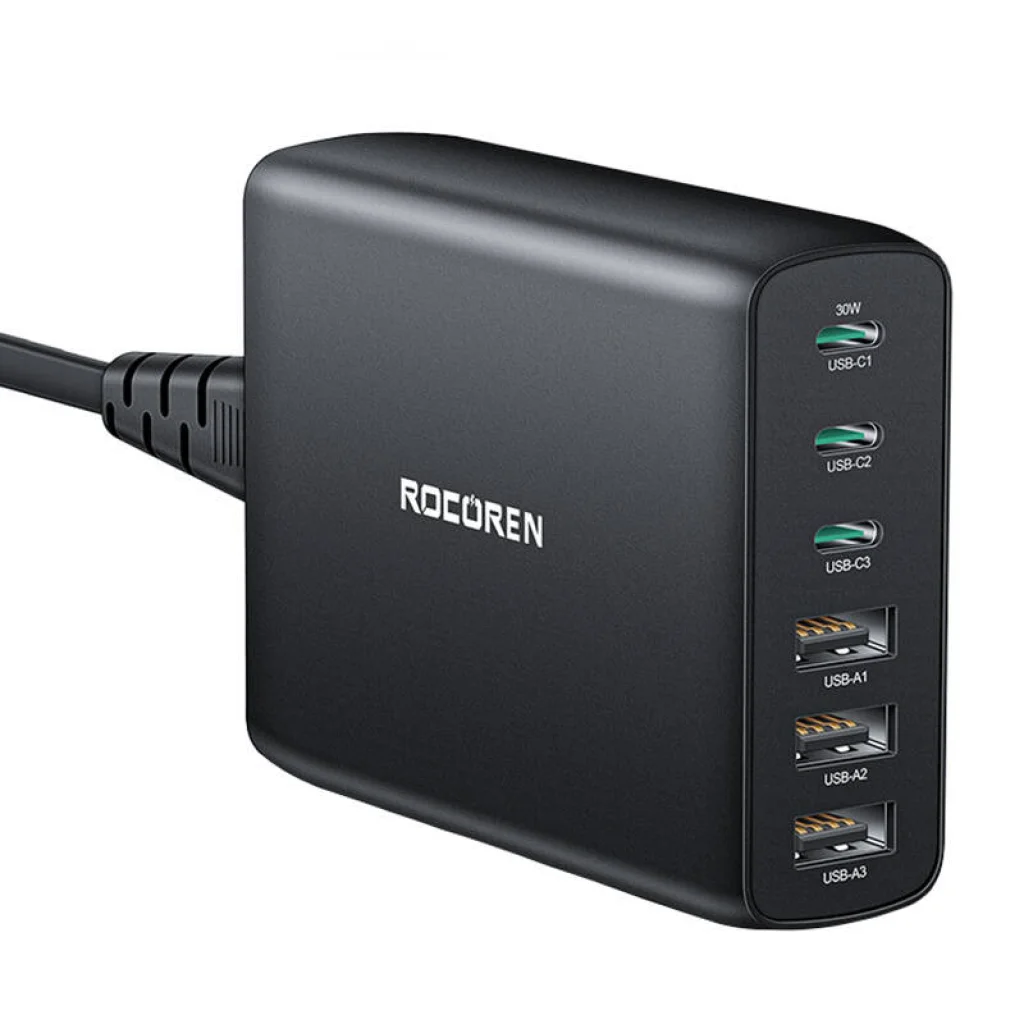 Most már csak egy töltőre van szüksége akár 6 eszköz egyidejű töltéséhez. A Rocoren márkájú termék 6 portot kínál (3x USB-C, 3x USB-A), és 100 W maximális kimeneti teljesítményt biztosít. Támogatja a különféle gyorstöltési szabványokat is, így nem kell túl sokat várnia, hogy okostelefonja vagy laptopja ismét munkára készen álljon. Ezenkívül a töltő fejlett GaN technológiát használ, így nem csak hihetetlenül hatékony, hanem könnyű és hordozható is.