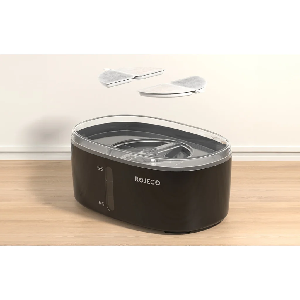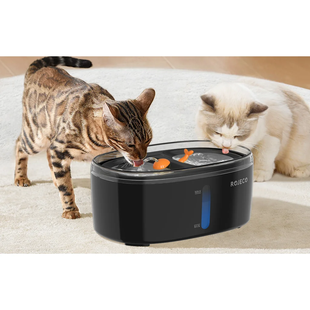 A Rojeco bemutatja a RYSJ-09 modern és intelligens vízszökőkút/ivókút megoldását, amely folyamatos hozzáférést biztosít friss és tiszta vízhez kutyája vagy macskája számára. A 2,5 literes kapacitású eszköz elegendő két macska heti vízigényének kielégítésére, így nem kell a gyakori vízutánpótlás miatt aggódnia. A kettős tál kialakítás lehetővé teszi, hogy két kisállat egyidejűleg használja, így ideális több kisállatot tartó háztartások számára.