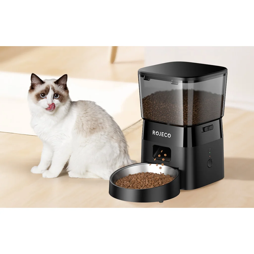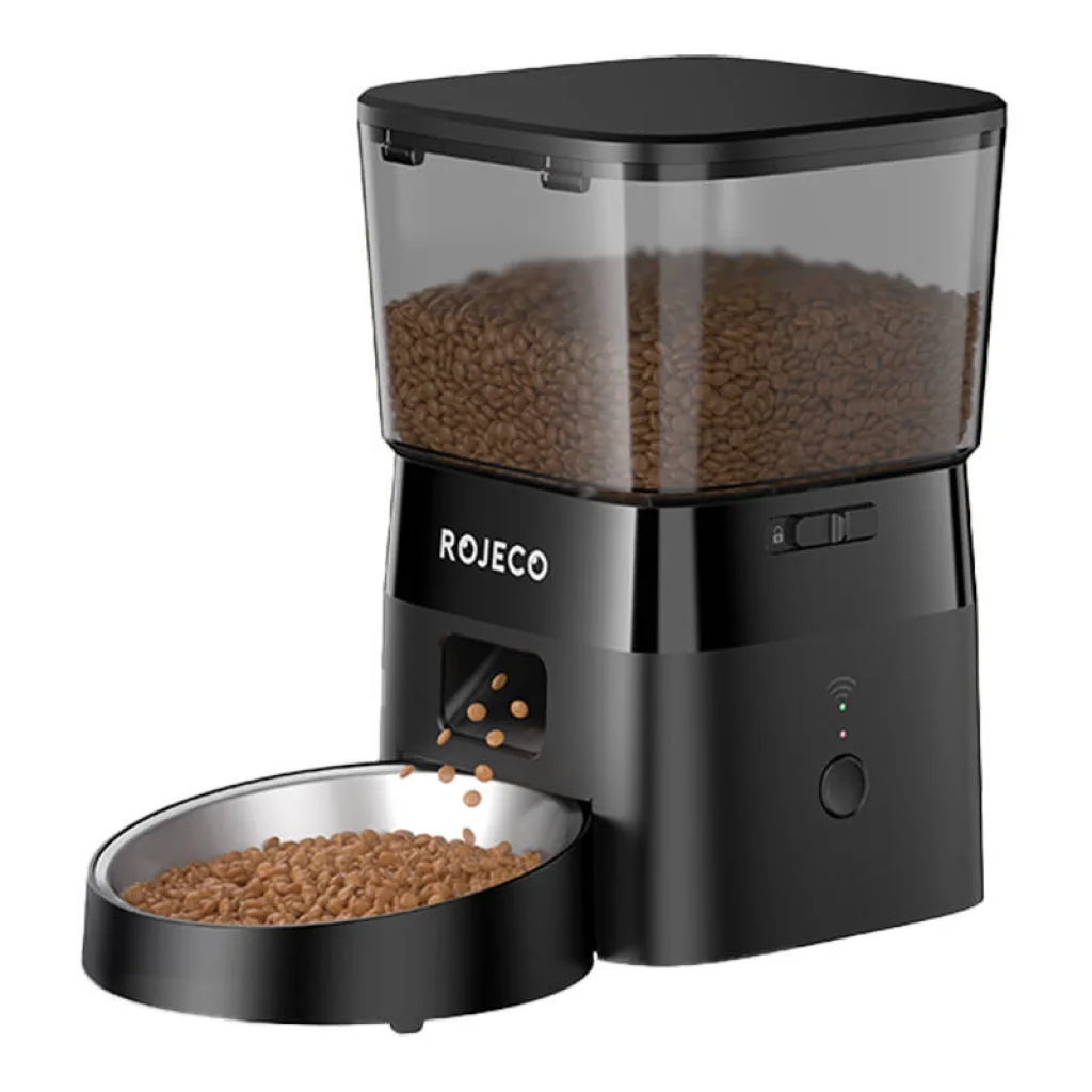 Gondoskodjon kedvence egészséges táplálkozásáról. A Rojeco intelligens állateledel-adagoló 2 literes kapacitással rendelkezik, és lehetővé teszi az etetési időbeosztás megtervezését. Úgy tervezték, hogy megakadályozza az étel eltömődését, és 2 módon működtethető - konnektorról vagy elemmel (nem tartozék). Emellett kiváló minőségű rozsdamentes acélból készült a tál, amely nagyon tartós és biztonságos az egészségre. A készülék kényelmes működtetését egy erre a célra kifejlesztett alkalmazás teszi lehetővé.