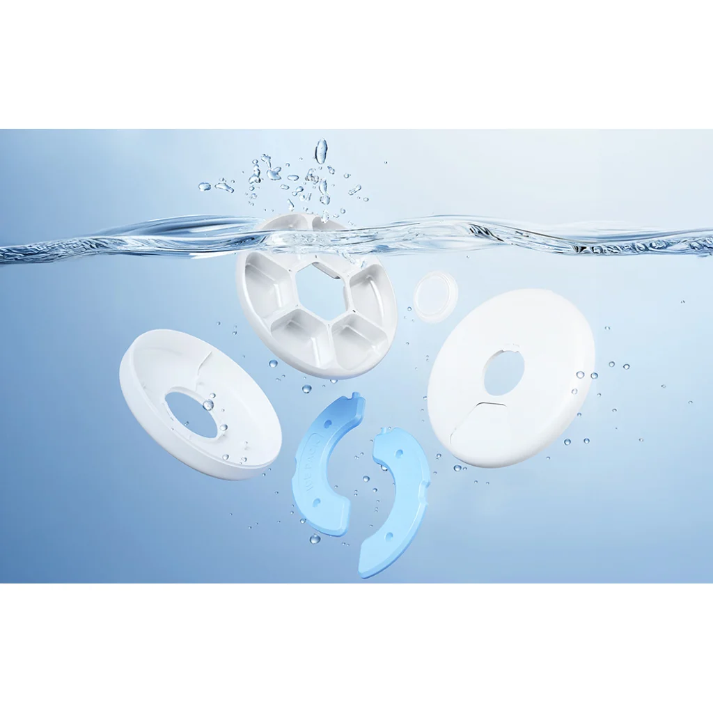 Funkcionalitás a mindennapi használathoz: A készülék 3 AA elemmel működik (nem tartozék), és akár 180 napig is üzemel egyetlen elemkészlettel. Kompakt méreteinek (31 × 31 × 8,8 cm) és csúszásmentes párnáinak köszönhetően az etetőgép bárhol könnyen felállítható, minimalista kialakítása pedig bármilyen belső térbe illeszkedik.