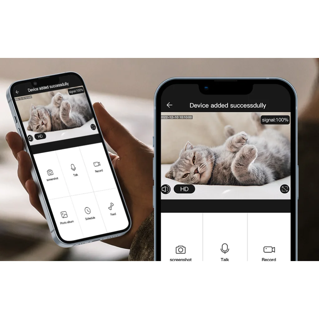 A Rojeco okos kisállat etető Wi-Fi-t használ, 3 literes tartállyal és 720p felbontású, 115°-os látószögű kamerával van felszerelve, amely lehetővé teszi az állatod megfigyelését és fényképek készítését. Így akkor is figyelemmel kísérheted kedvencedet és kapcsolatba léphetsz vele, amikor nem vagy otthon. A beépített hangszóró és mikrofon segítségével parancsokat adhatsz kedvencednek, és akár 10 másodperces hangüzenetet is felvehetsz, hogy étkezéskor bátorítsd őt. Az alkalmazásból szerkeszthető étkezési tervet hozhatsz létre. Az eszközt kétféleképpen lehet táplálni, és egyszerű használni és karbantartani.