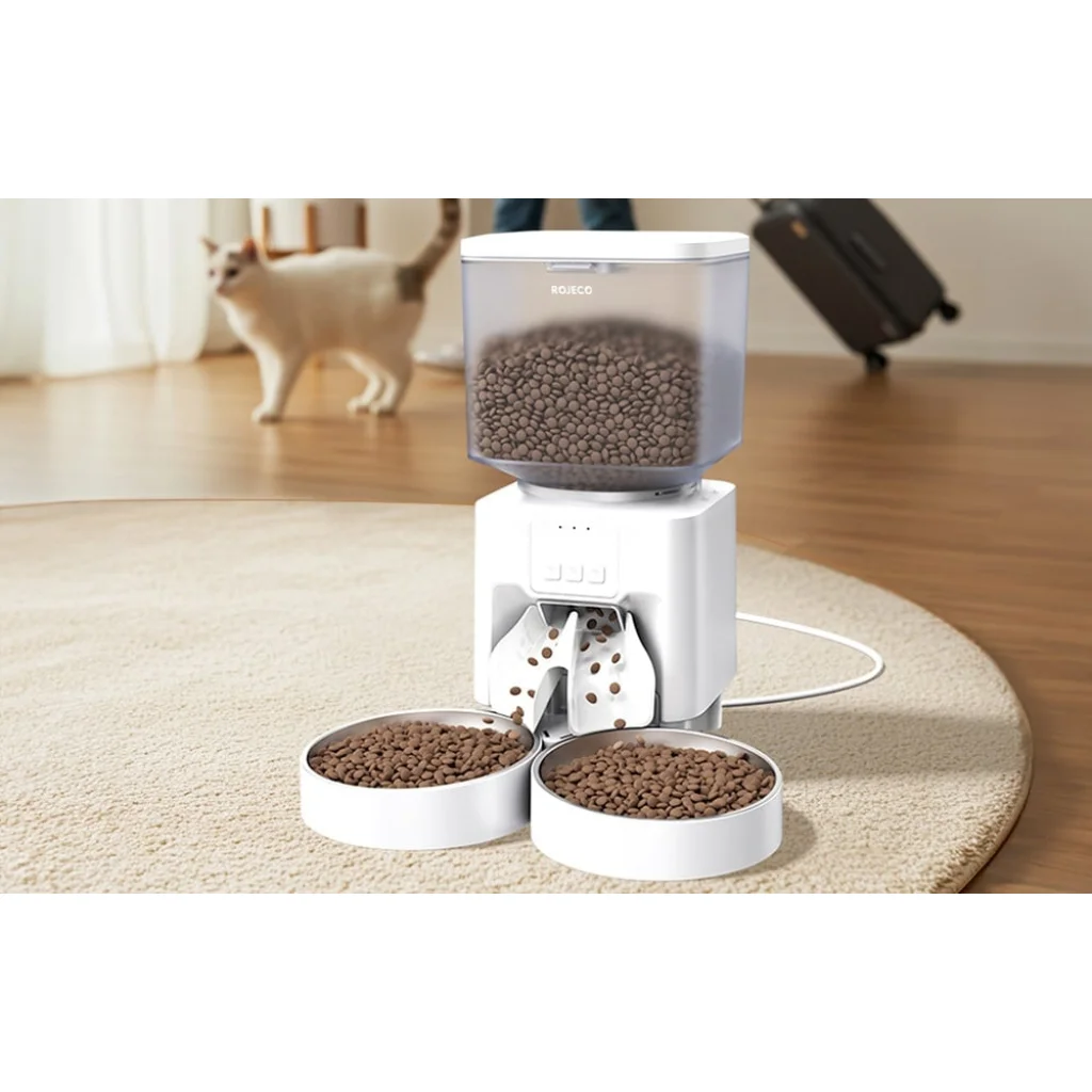 Képzelje el a nyugalmat, amikor tudja, hogy kedvencei mindig időben, friss és ízletes eledelhez jutnak, függetlenül attól, hogy hol van! A Rojeco 4,5L Automata Kisállat Etető WiFi Verzió Dou a modern technológiát ötvözi a kisállattartók mindennapi igényeivel, hogy otthonának két négylábú lakója is gondtalanul élvezhesse az étkezéseket.