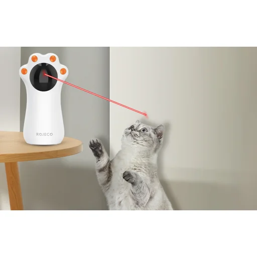 A Rojeco-val kedvencednek nincs unalomra esélye! A lézeres játék reagál a macskák vadászösztöneire, és aktivitásra ösztönzi őket. Így nemcsak nagyszerű szórakozást biztosít, hanem segít a súlyproblémák megelőzésében is. Csak kapcsold be az eszközt, és figyeld, ahogy kedvenced őrült kergetőzésbe kezd a lézerrel!