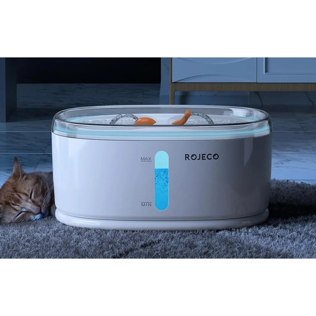 A Rojeco itató kapacitása 2,5 liter, így nem kell gyakran újratölteni a vizet. A készülék átlátszó ablaka lehetővé teszi a tartály állapotának kényelmes ellenőrzését, és a kijelző tájékoztat az alacsony vízszintről.