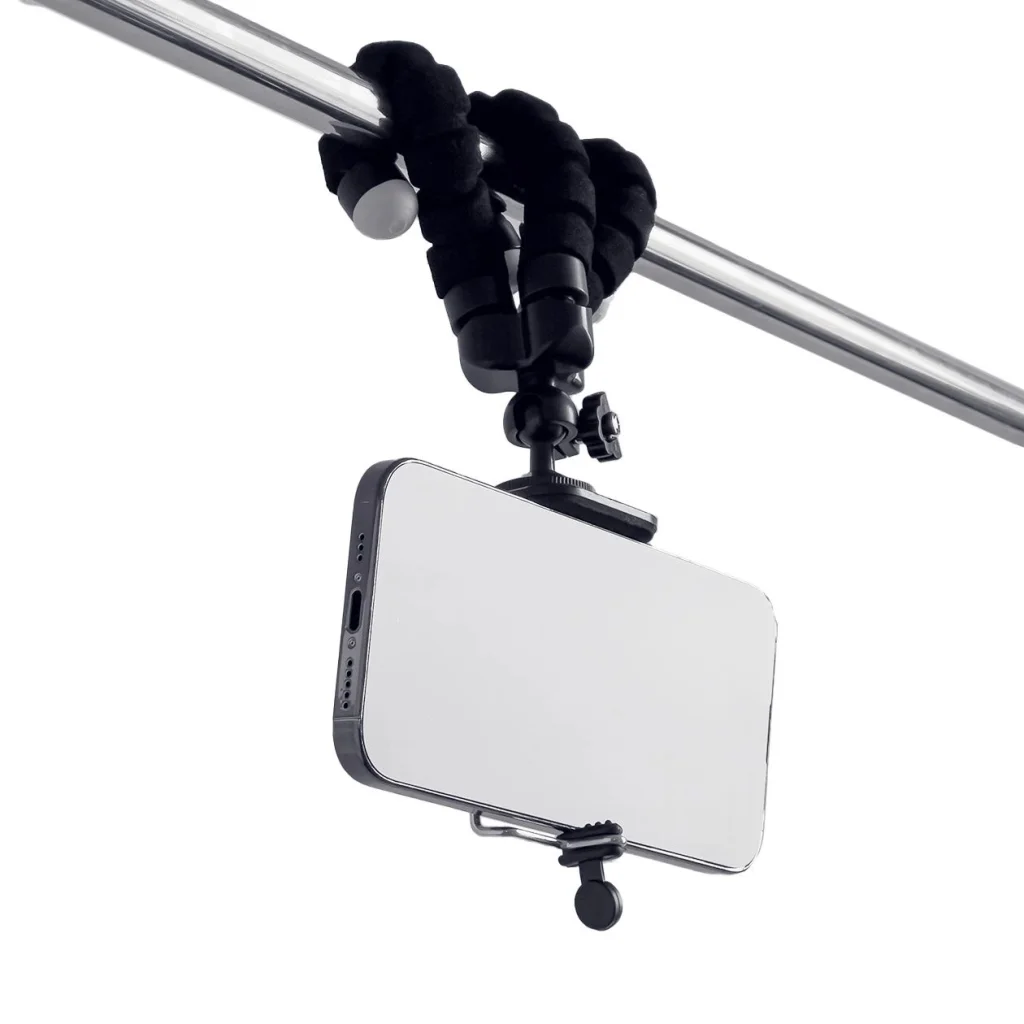 A rugalmas lábaknak köszönhetően állványunk garantálja a stabilitást bármilyen felületen, lehetővé téve a telefon kreatív elhelyezését a tökéletes fotók vagy videók készítéséhez.