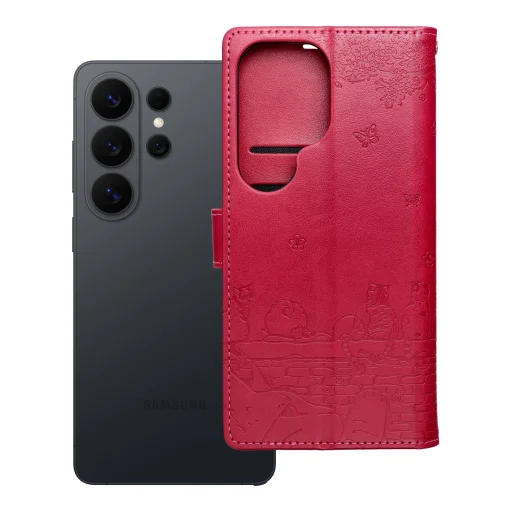 Samsung Galaxy A17 MEZZO könyvtok macskás piros tok