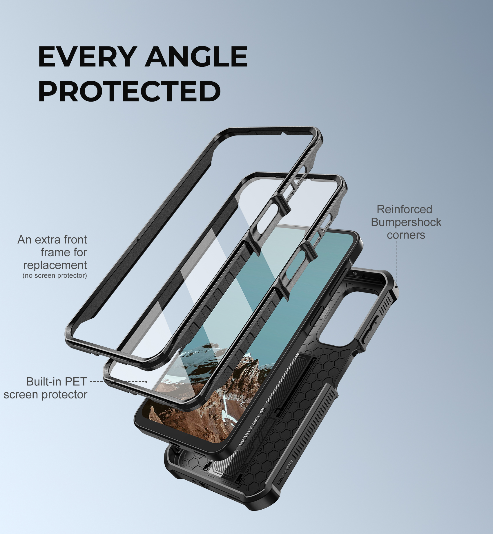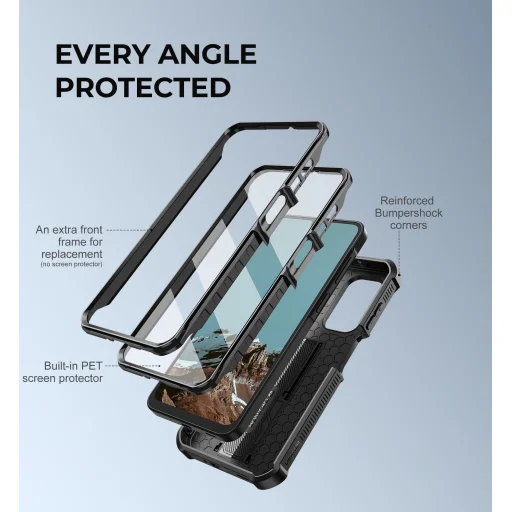 - Megerősített ütéscsillapító sarkok: A stratégiailag megerősített BumperShock sarkok elnyelik az ütéseket és minimalizálják a sérülések kockázatát, különösen a leginkább kitett területeken.