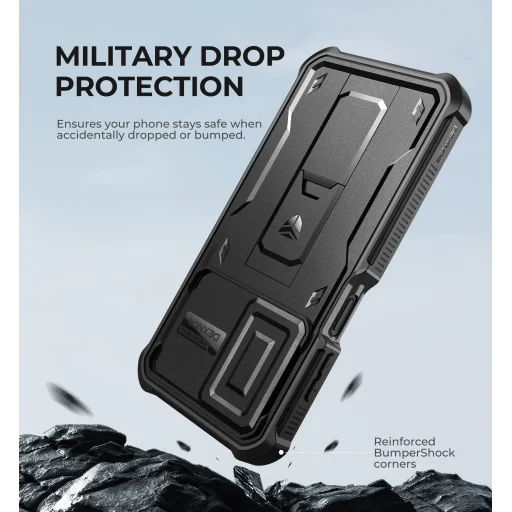 - Katonai szintű leesés elleni védelem: Gondoskodjon róla, hogy telefonja sértetlen maradjon még véletlen leejtés vagy ütközés esetén is. A tok ellenáll a legkeményebb behatásoknak is, így nyugodtan használhatja készülékét bármilyen körülmények között.