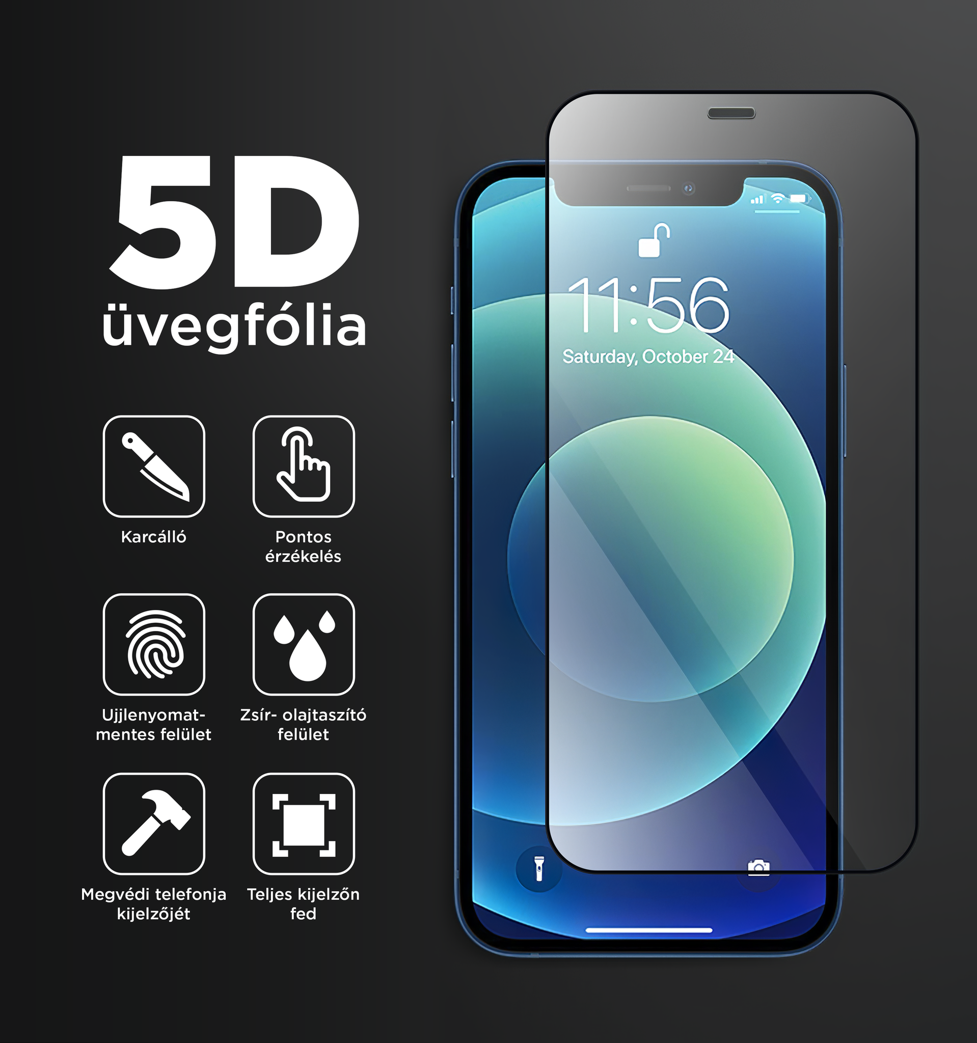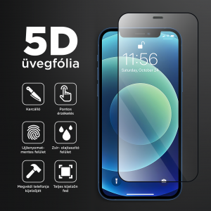 Samsung Galaxy A22 5G kijelzővédő üvegfólia 9H 5D HD 0.33mm fekete kerettel Alphajack