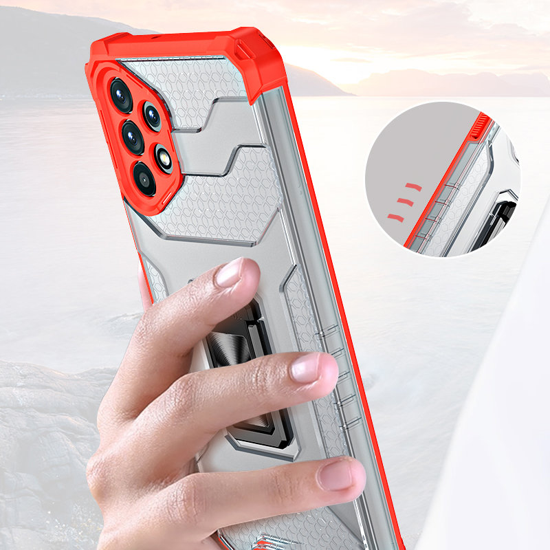 Beépített gyűrűtartó a tok hátoldalán. Kompatibilis mágneses autótartóval.