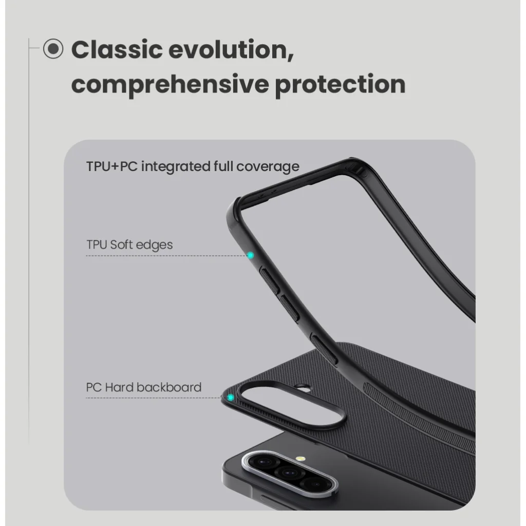 Kemény és tartós műanyagból áll a hátlapon, valamint TPU puha műanyagból az oldalakon.