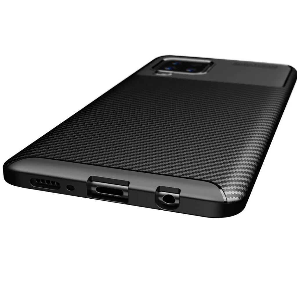 Samsung Galaxy A42 5G Armored szénszál mintájú TPU tok fekete