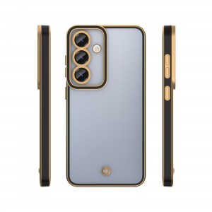 A hajlékony TPU-ból készült Silky Gold védőtok eleganciát és funkcionalitást ötvöz. A matt, félig áttetsző hátlap finom arany díszítésekkel modern megjelenést kölcsönöz. Az emelt profil védi a kamerát, míg a pontos kivágások kényelmes használatot biztosítanak a telefon számára. A karcsú, mégis tartós kialakítás (1,5 mm) hatékonyan elnyeli az ütéseket, és egy hevedernek való nyílással is rendelkezik.