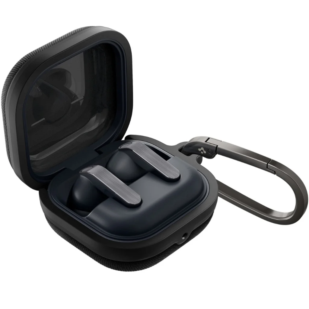 Elegáns Spigen Urban Fit tok Samsung Galaxy Buds 4 / 4 Pro fülhallgatóhoz. A tok tartós polikarbonát (PC) és nejlon kombinációjából készült, így kiváló védelmet nyújt a fülhallgatónak a sérülésekkel szemben, miközben kényelmes a mindennapi használat során.