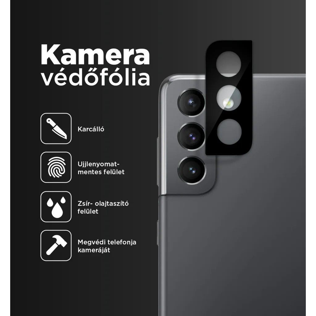 Samsung Galaxy S21 Ultra kamera lencse védő üvegfólia fekete Alphajack 1db