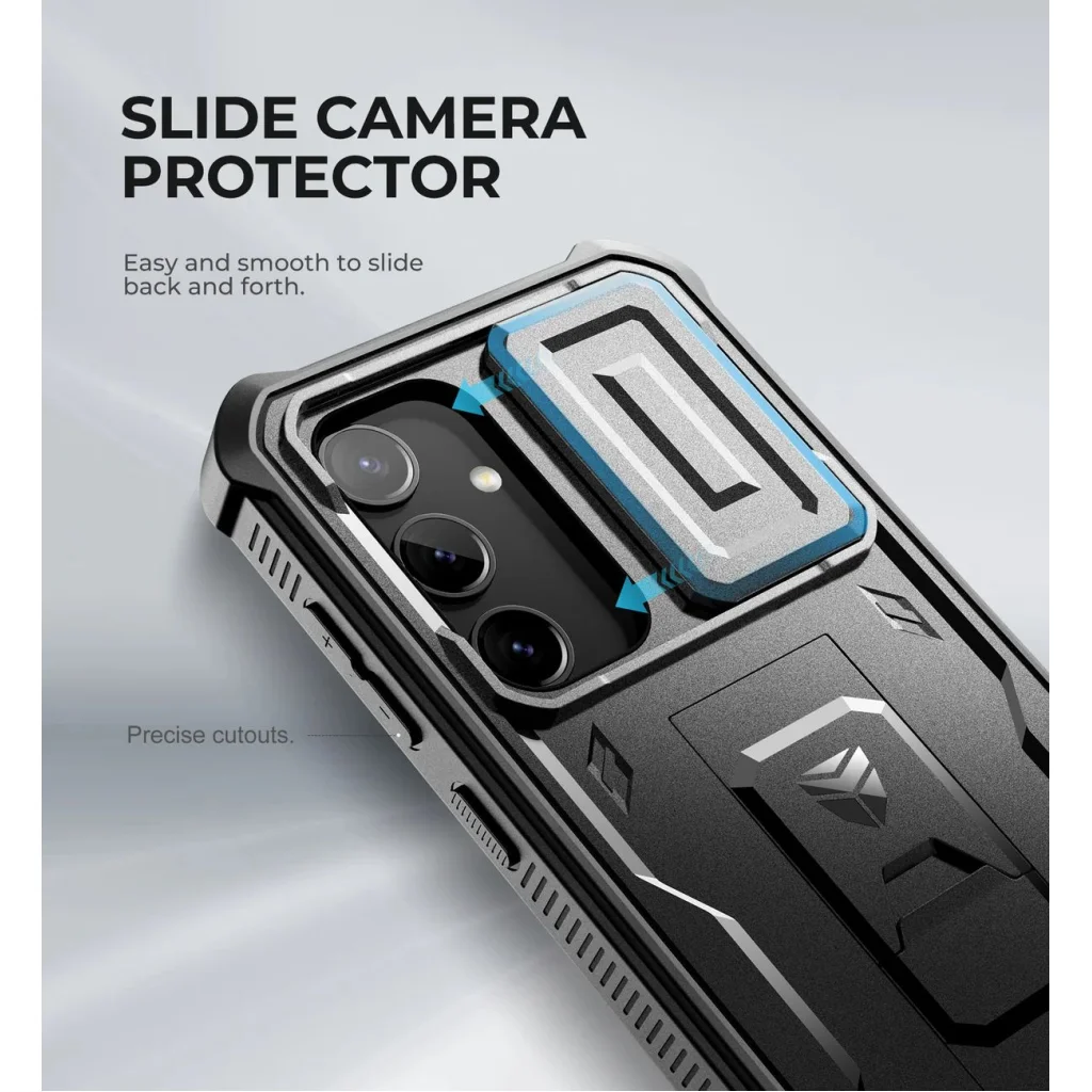Óvja meg Samsung Galaxy S24 kameráit a karcolásoktól és a szennyeződésektől egy innovatív, könnyen csúsztatható kameravédő mechanizmussal. Ez a funkció pillanatok alatt lehetővé teszi a kamera szabad használatát, majd visszatolva teljes védelmet biztosít, miközben pontos kivágásaival nem zavarja a gombok vagy portok elérését.