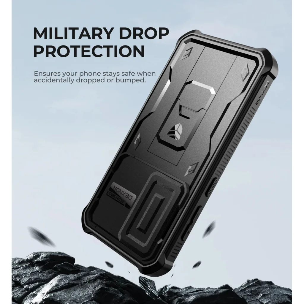 Védje Samsung Galaxy S24 készülékét a maximális biztonsággal és funkcionalitással a Dexnor 360 ütésálló tok segítségével. Ez a fekete, robusztus tok nemcsak elnyeli az ütéseket, hanem praktikus funkciókkal is kiegészíti telefonja mindennapi használatát.