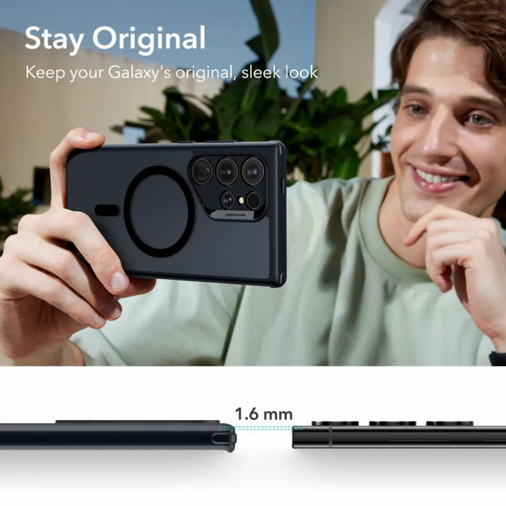 ESR Air Armour HaloLock egyrészes tok, mely merev, átlátszó hátlapból és körülötte flexibilis keretből áll, hőre lágyuló, puha anyagból, mely ráadásul védi a készüléket a sérülésektől. Az Air-Guard sarkok kiegészítő védelmet nyújtanak készülékünknek - tökéletesen elnyelik az ütéseket és elnyelik az esetleges eséseket. A tok enyhén megemelt formája a kamerát körülveszi, megóvja a karcolásoktól azáltal, hogy egy sík felület fölé emeli a telefont. A tok fedelekkel rendelkezik a gombokhoz és kivágásokhoz a portokhoz. A HaloLock a MagSafe vezeték nélküli technológiával kompatibilis gyűrűvel van felszerelve . A mágnesgyűrű biztosítja a maximális töltési hatékonyságot, valamint a MagSafe funkcióval rendelkező tartozékok gyors és egyszerű csatlakoztatását.
