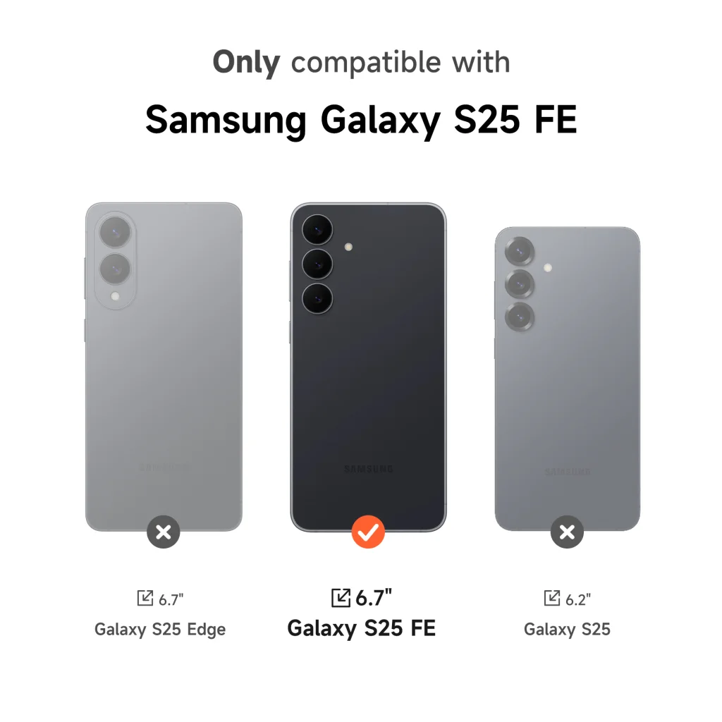Fontos: Ez a tok kizárólag a Samsung Galaxy S25 FE (6.7") modellel kompatibilis. Kérjük, vegye figyelembe, hogy nem alkalmas a Galaxy S25 Edge (6.7") vagy a Galaxy S25 (6.2") készülékekhez.