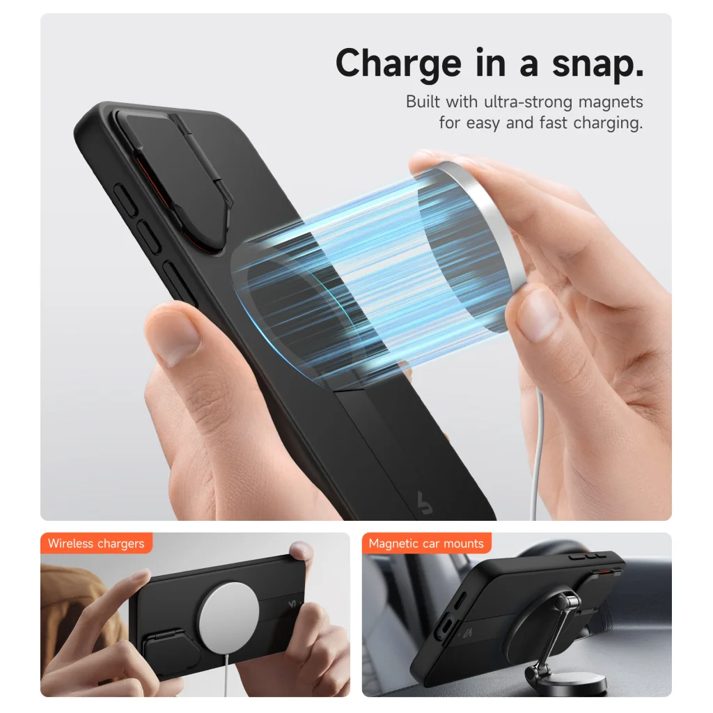 Az ultraerős mágnesekkel felszerelt tok pillanatok alatt lehetővé teszi a MagSafe vezeték nélküli töltést, biztosítva a könnyű és gyors energiaellátást. Ezenfelül, tökéletesen kompatibilis a vezeték nélküli töltőkkel és a mágneses autós tartókkal a maximális kényelem érdekében.