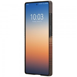 A PITAKA gondoskodott róla, hogy az Ultra-Vékony tok minden részlete tökéletesen kidolgozott legyen. A pontos kivágások garantálják a könnyű hozzáférést a gombokhoz és a portokhoz, míg a kamera körüli kiemelt élek védik a lencséket a felületektől. Tartós aramid szál jellegzetes szövése modern és elegáns megjelenést kölcsönöz a tok számára. Ez a kiadás a Sunset · Moonrise motívummal büszkélkedik, amelyet a naplemente és a holdkelte átmenete inspirált, egyedi karaktert adva a toknak. A dizájnt az új márka logója egészíti ki, amely finoman integrálódik a stílusba. A texturált felület javítja a fogást, miközben hangsúlyozza a prémium megjelenést.