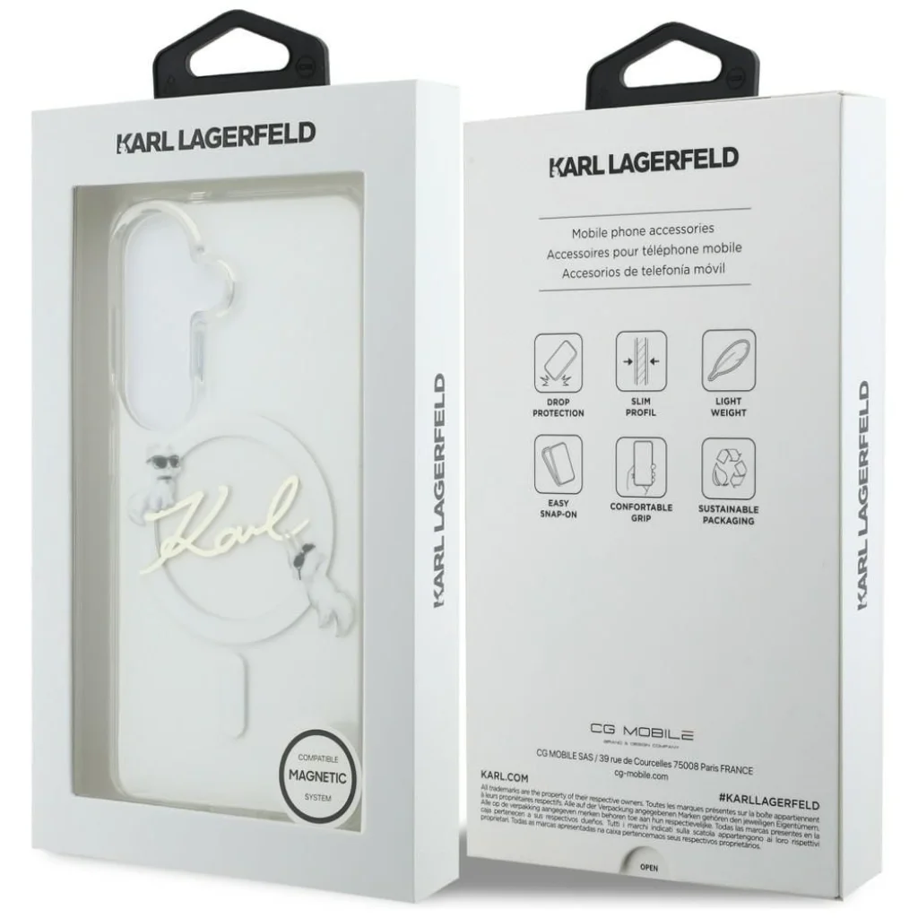 A Karl Lagerfeld IML Choupette Karl Script Logo Mágneses hátlap a tökéletes kiegészítő a telefonodhoz és a ruházatodhoz, amely a funkcionalitást és a stílust egyesíti.