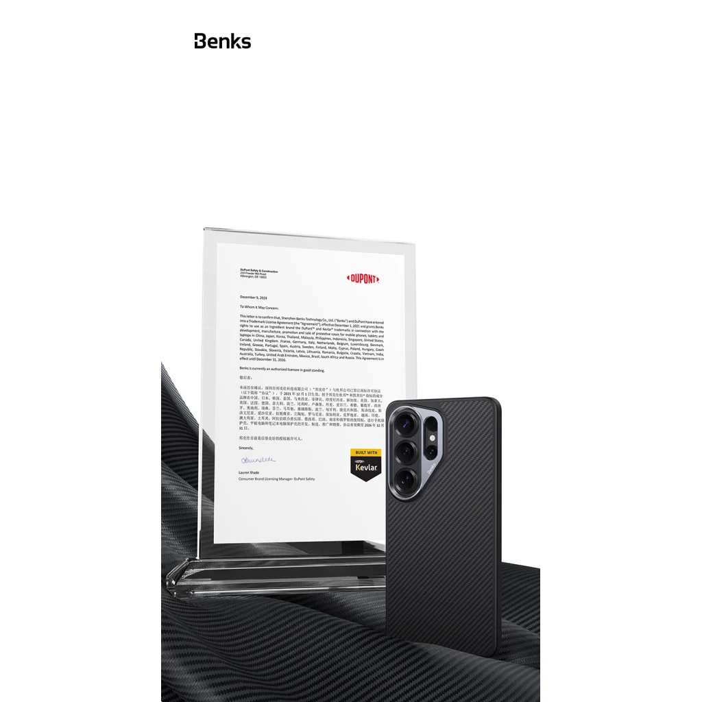 - 600D Kevlar® hátlap: A könnyű, de extrém módon ellenálló Kevlar® anyag védi a telefon hátulját, biztosítva a prémium tapintást és a kiváló fogást.