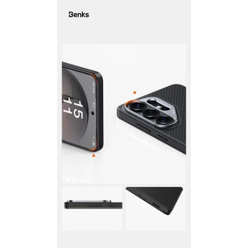 A Benks Armor Pro tok tökéletesen illeszkedik a Samsung Galaxy S26 készülékhez, miközben karcsú profiljával és elegáns megjelenésével kiemeli annak prémium karakterét. A precíz kivágások biztosítják a portok és gombok zavartalan használatát, a texturált hátlap pedig kényelmes és csúszásmentes fogást garantál.