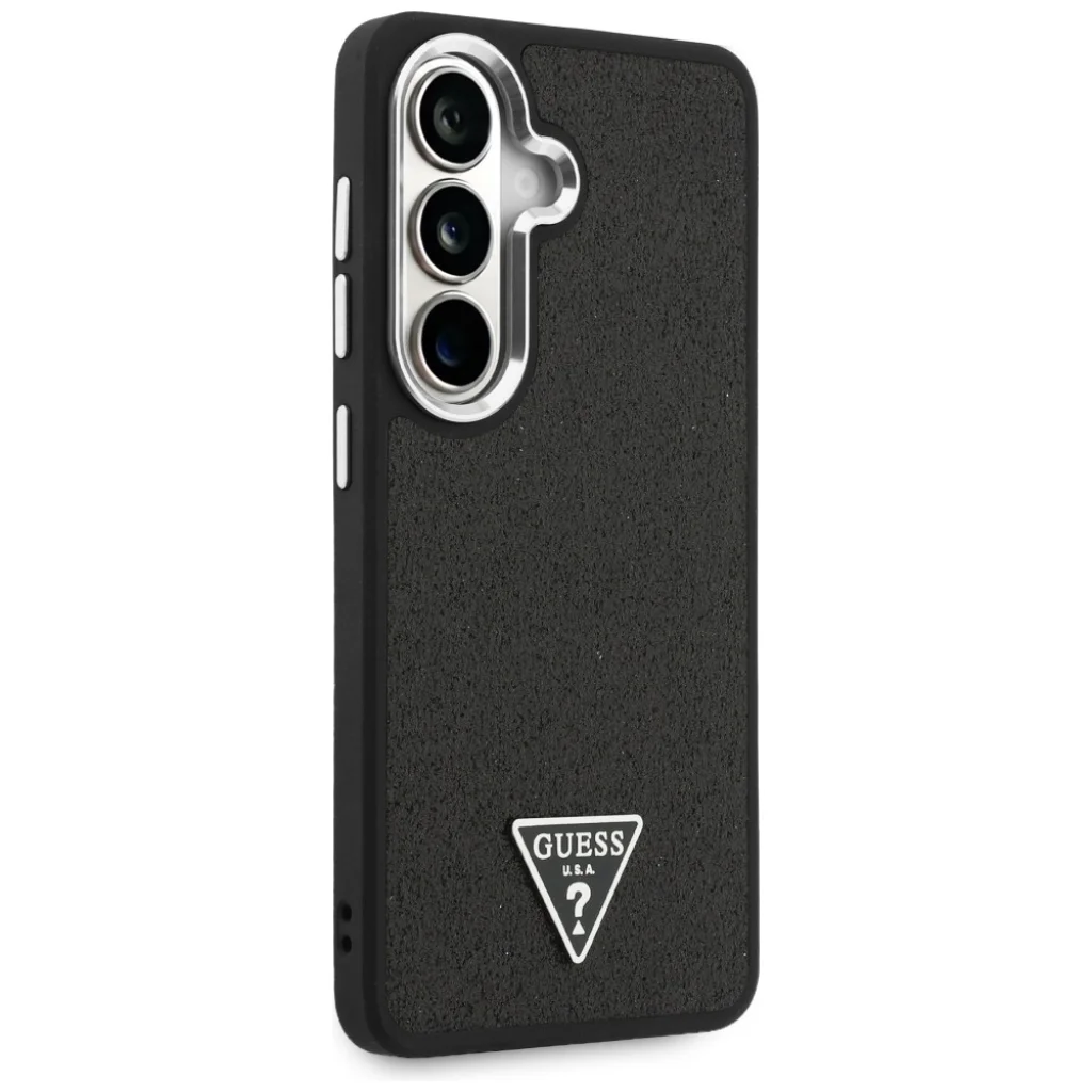 A világhírű Guess márka exkluzív védőtokja az elegancia és a stílus legmagasabb szintű kombinációja. A tok felülete elegáns öko-bőrrel van borítva, amelyet az ikonikus Háromszög mintázat díszít. A kamera kerete és a gombok arany színben készültek, ami a tok egészének luxus megjelenést kölcsönöz. A tok alján egy dekoratív Guess embléma található. Ez a funkcionális és elegáns dizájn tökéletes kombinációja, melynek köszönhetően telefonja nemcsak tökéletesen védett lesz, hanem divatos kiegészítővé is válik.