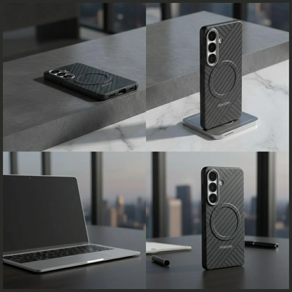 A Samsung Carbon Magnet elegáns megjelenést is kínál – a sötétszürke színű, letisztult dizájn visszafogott kidolgozással tökéletesen illeszkedik a Samsung Galaxy S26 Plus modern stílusához. A tok nemcsak védi a készüléket, hanem exkluzív karaktert is ad neki, kiemelve modern esztétikáját.