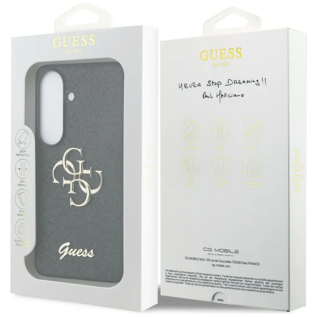 Samsung Galaxy S26 tok Guess Fixed Glitter Big 4G Metal Logo fekete tok
