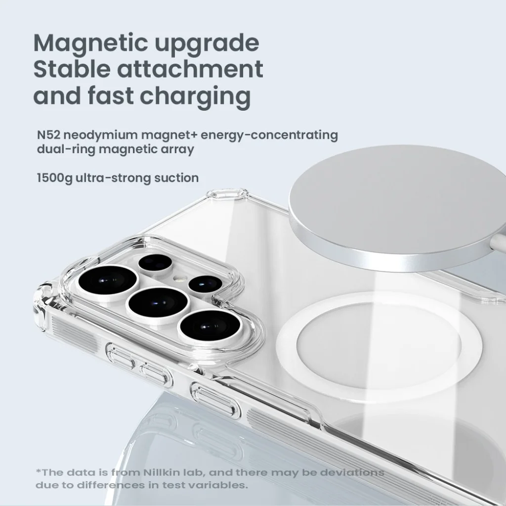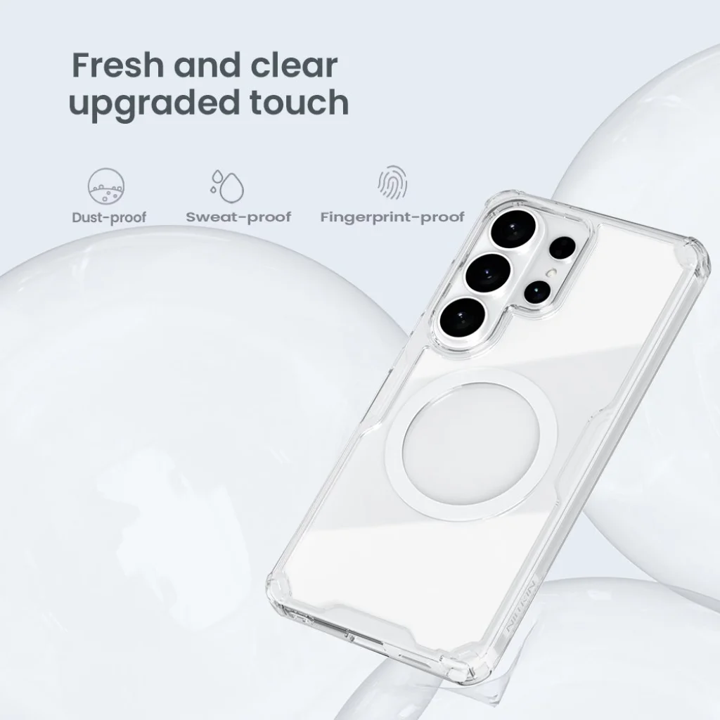 A Nillkin Nature TPU PRO mágneses védő fliptok integrált mágnessel rendelkezik, amely kompatibilis az Apple MagSafe kiegészítőkkel.