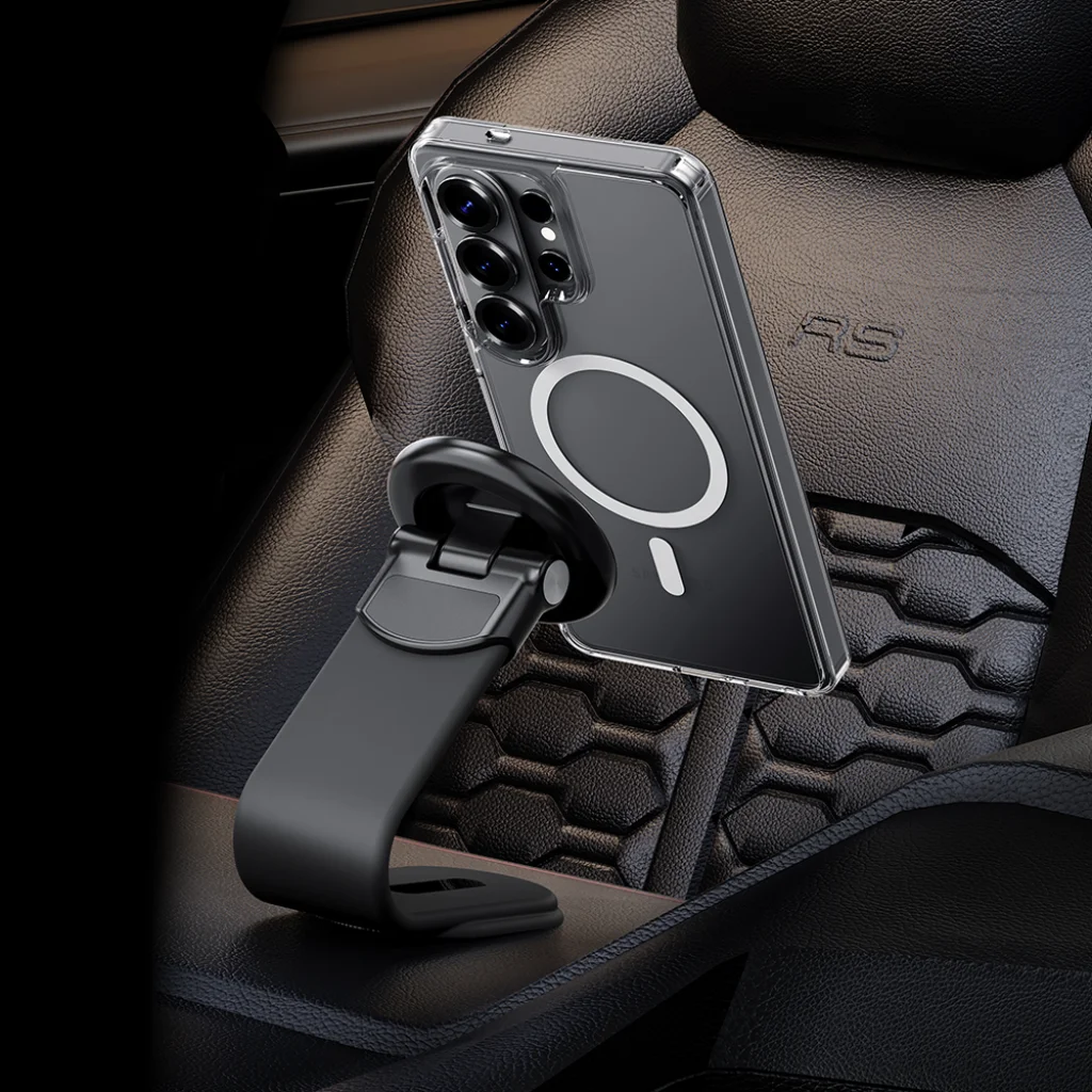 - Beépített mágneses tartó – Funkcionális gyűrű, ami állványként is használható.