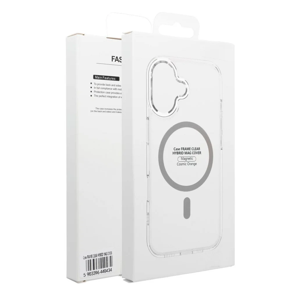A FRAME CLEAR HYBRID MAG COVER védőtok hibrid technológiával készült, ami merev polikarbonátot (PC) és rugalmas termoplasztikus poliuretánt (TPU) kombinál az oldalakon. A PC hátlap magas ellenállást biztosít a karcolásokkal és a mechanikai sérülésekkel szemben, míg a TPU keret elnyeli a ütéseket és könnyűvé teszi a tok felhelyezését. Az átlátszó hátlap fémes akcentussal emeli ki a telefon dizájnját, miközben magas szintű védelmet nyújt. A termék a polcokon is kitűnik a galvanizált bevonatának köszönhetően, amely mély, fémes fényt ad a keretnek. A tok erős MagSafe gyűrűvel van felszerelve, amely biztosítja a kompatibilis kiegészítők stabil és biztonságos rögzítését és a hatékony vezeték nélküli töltést. A kamera sziget körüli kiemelt keret védi az objektíveket a közvetlen érintkezéstől a sík felületekkel, minimalizálva a karcolások és mechanikai sérülések kockázatát. Pontos kivágások a portok számára és érzékeny gombburkolatok biztosítják a kényelmes használatot anélkül, hogy le kellene venni a tokot. Műszaki adatok: - Anyag: PC + TPU hibrid - Vezeték nélküli töltés támogatás: igen - Mágneses tartó támogatás: igen - MagSafe támogatás: igen - Csomagolás típusa: doboz