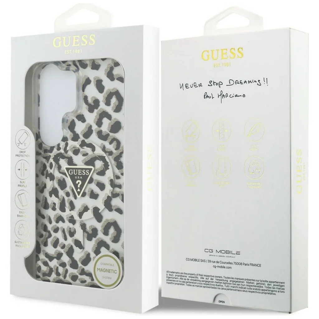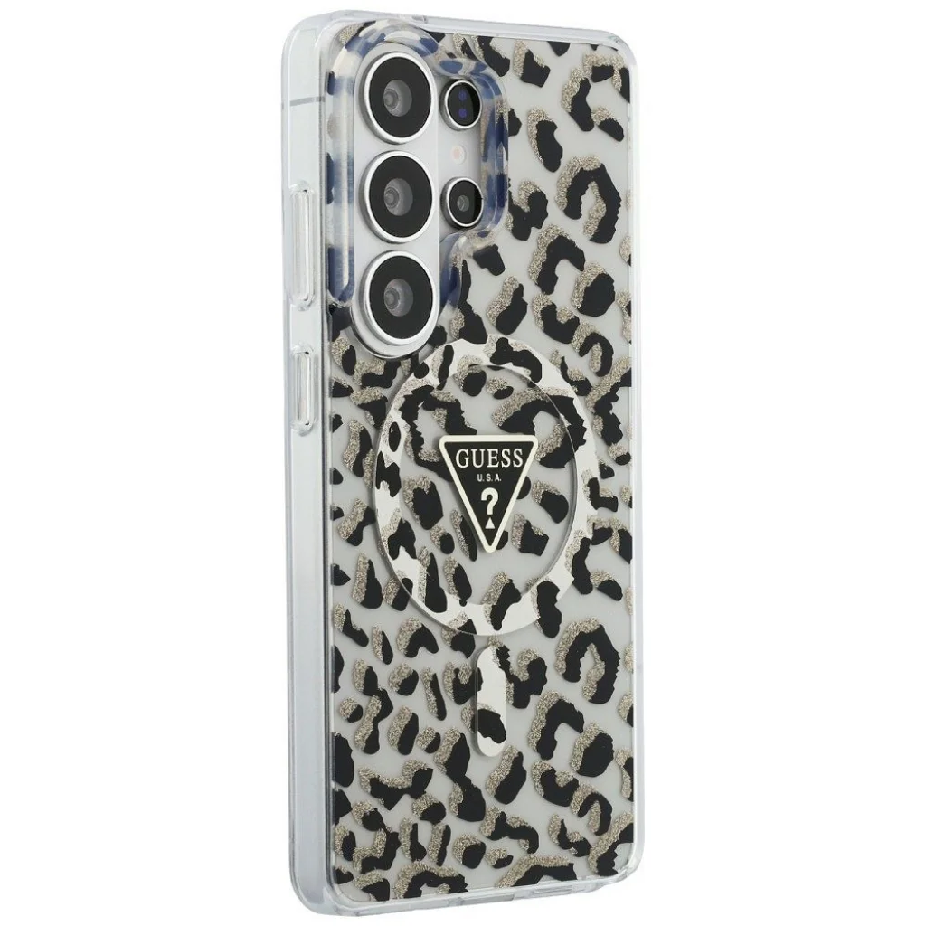 Samsung Galaxy S26 Ultra Guess IML Leopard Print Triangle tok MagSafe fekete