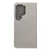 Elegáns tok fémkerettel a telefon fokozott védelméért. Az vonzó textúra és a kellemes tapintású anyag stílusos tokot hoz létre, amely kiemeli a készülék modern dizájnját. A puha velúr anyag belül és a tartó részben megvédi a készüléket mindkét oldalon a sérülésektől és karcolásoktól. A fogantyú rugalmas szilikonból készült és kivágásokkal rendelkezik. Az alumínium keret a széleken még erősebbé teszi a tokot és fokozott védelmet nyújt a készüléknek. A fém és az eredeti anyag kombinálása egyedi és modern kompozíciót teremt, amelynek köszönhetően a készülék stílusos és elegáns megjelenést kap. A tokban egy kis zseb is található a kézre eső dokumentumok vagy bankjegyek számára. A tok vízszintes talapot alkot filmek vagy fotók nézéséhez. Egy erős mágnes biztosítja a tok könnyű zárását és nyitását, valamint megakadályozza, hogy véletlenül kinyíljon.