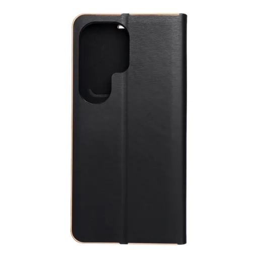 Elegáns tok fémkerettel a telefon fokozott védelméért. A vonzó textúra és a kellemes tapintású anyag stílusos tokot eredményez, amely kiemeli a készülék modern kialakítását. A puha velúr anyag belül és a tartórészben mindkét oldalról védi a készüléket a sérülésektől és karcolásoktól. A fogantyú rugalmas szilikonból készült és kivágásokat tartalmaz. Az alumínium keret az éleken erősíti a tokot, és még inkább védi a készüléket. A fém és az eredeti anyag kombinálása egyedi és modern kompozíciót hoz létre, amelynek köszönhetően a készülék stílusos és elegáns megjelenést kap. A tok tartalmaz egy kis zsebet a kéznél lévő dokumentumok vagy bankjegyek számára. A tok vízszintes alappal rendelkezik filmek vagy fényképek nézéséhez. Az erős mágnes biztosítja a könnyű nyitást és zárást, és megakadályozza a véletlen kinyílást.
