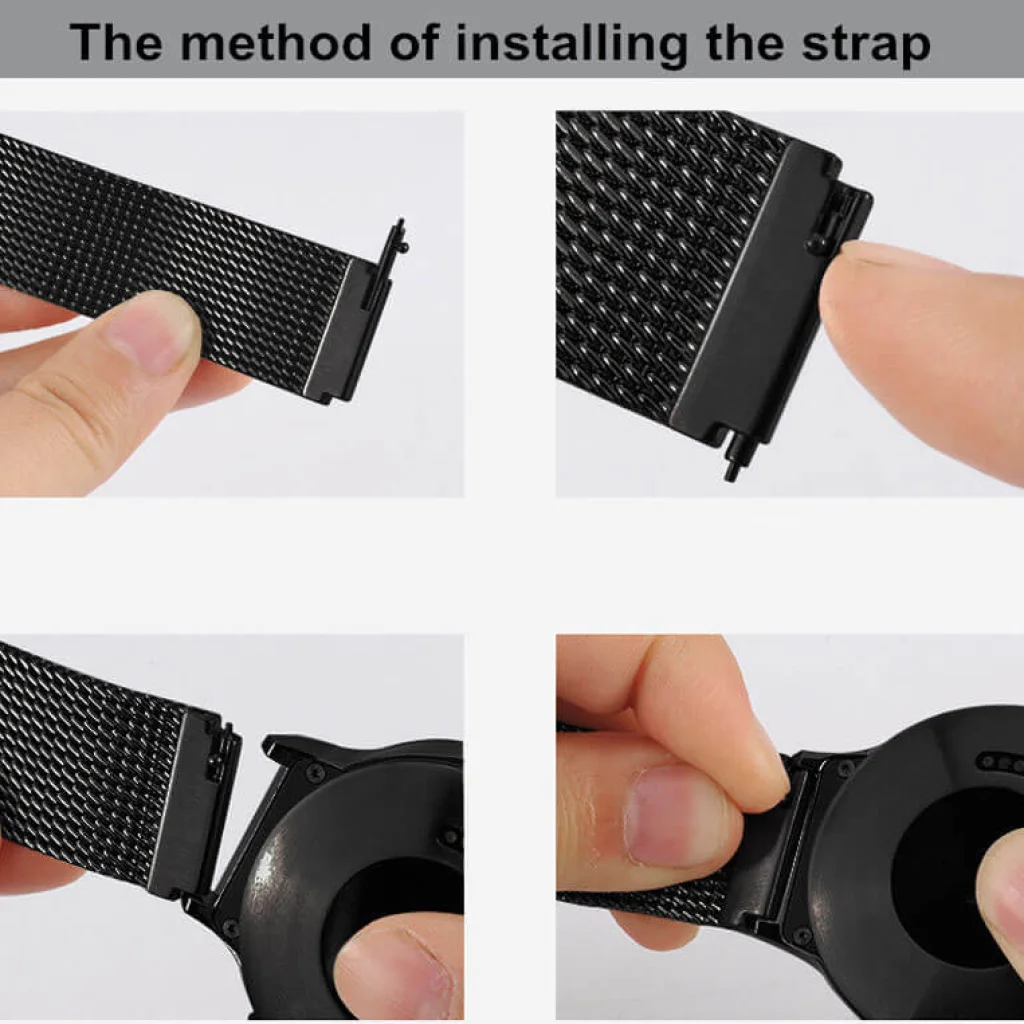 Rozsdamentes acélból készült milánói 22mm óraszíj. Elegáns megjelenés, légáteresztő kialakítás, kényelmes viseletet biztosít. Mágneses rögzítés. Gyorsan leoldható/cserélhető.