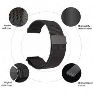 Rozsdamentes acélból készült milánói 22mm óraszíj. Elegáns megjelenés, légáteresztő kialakítás, kényelmes viseletet biztosít. Mágneses rögzítés. Gyorsan leoldható/cserélhető.