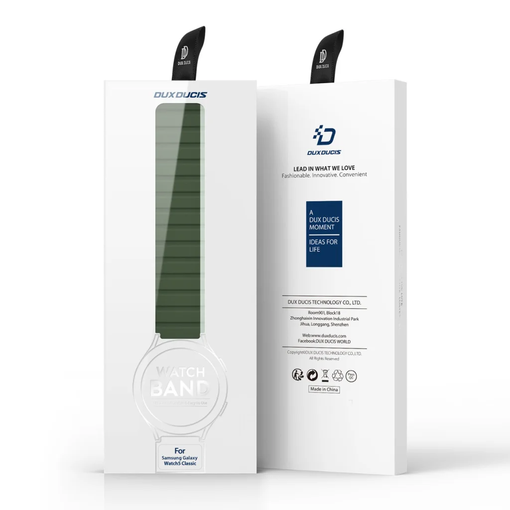Adj stílust órádhoz! A Dux Ducis Strap (LD Version) sorozat elegáns és kényelmes mágneses pántja irodai és sportutakra egyaránt alkalmas. Az öv a részletekre való kivételes odafigyeléssel készült. Puha és kényelmes, szabadon állítható. A mágneses pántot nagyon könnyű felvenni – csak két mozdulat, és kész. A karkötőbe ágyazott erős mágnesek tartják az órát a csuklón. A szíj hossza 140-230 mm kerületű csuklóhoz igazodik. 22 mm-es fültávolságú órákhoz illeszthető.